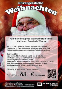 Treffen Sie sich mit Freunden, der Familie oder Ihren Arbeitskollegen in der Markt- und Eventhalle Wismar und genießen die weihnachtliche Atmosphäre ...